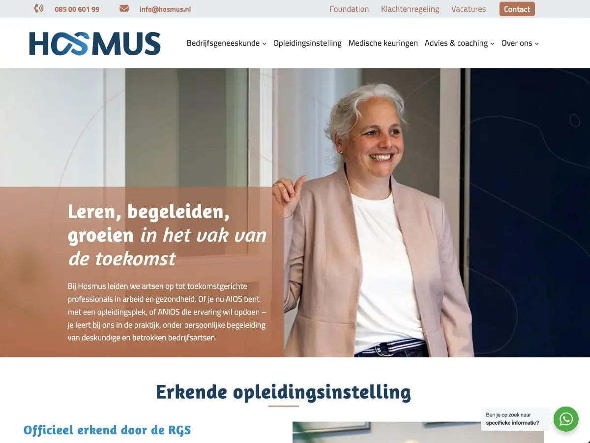 Hosmus Bedrijfsgeneeskunde & Consultancy was echt toe aan ‘de volgende stap’, niet alleen qua website, maar in de breedte zin des woords. Ondernemer Karin was in contact gekomen met Confrérie des Sabreurs en met hen een traject gestart om de branding van Hosmus Bedrijfsgeneeskunde & Consultancy verder te professionaliseren. Op voorwaarde dat wij, de bouwers van hun ‘oude website’, ook de nieuwe website zouden gaan bouwen.